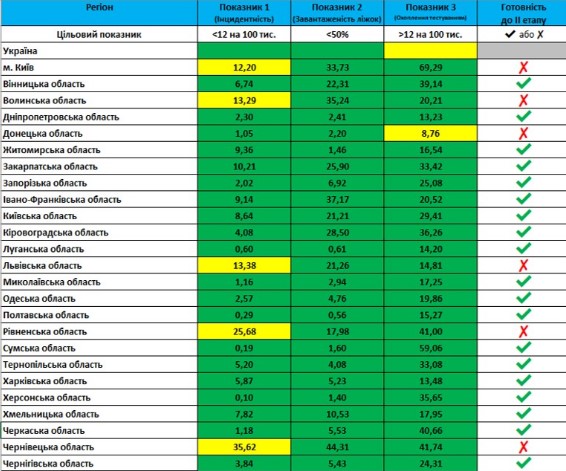 Также по этому показателю к смягчению карантина не готовы Волынская область (13,29), Львовская (13,38), Ровенская (25,68) и Черновицкая (35,62) области.