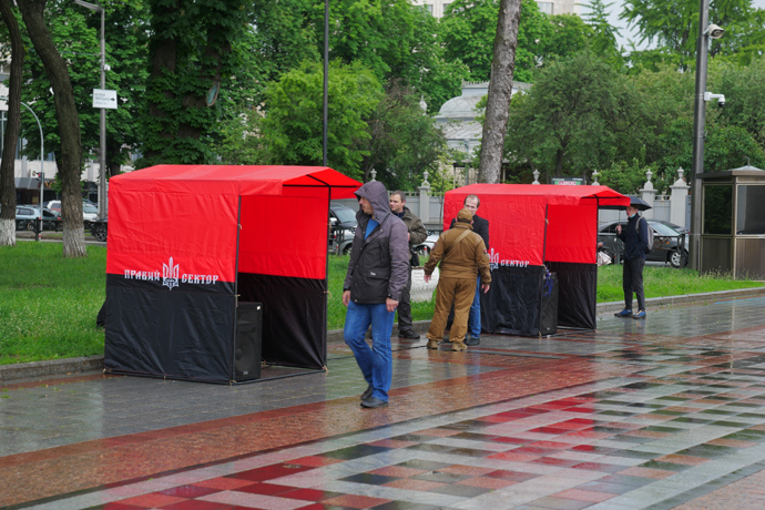 Детали: Сейчас под Радой находятся несколько десятков человек. Также устанавливают палатки с символикой "Правого сектора".