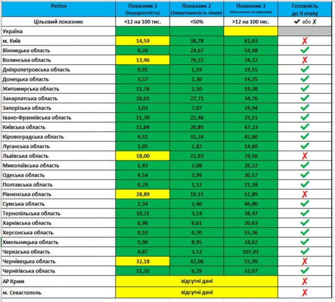 По состоянию на 7 июня четыре региона Украины и Киев не соответствуют необходимым критериям для ослабления противоэпидемических мероприятий.