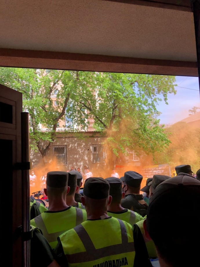 Под судом по Стерненко столкновения, депутаты и петарды: в зал не пускают людей