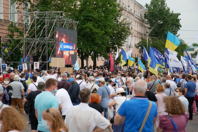 Под Печерским судом собрались тысячи людей в поддержку Порошенко