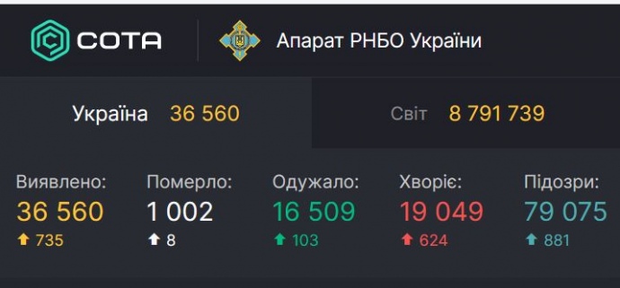 За прошедшие сутки, 20 июня, в Украине обнаружили еще 735 больных с Covid-19, что значительно меньше показателей двух предыдущих дней.