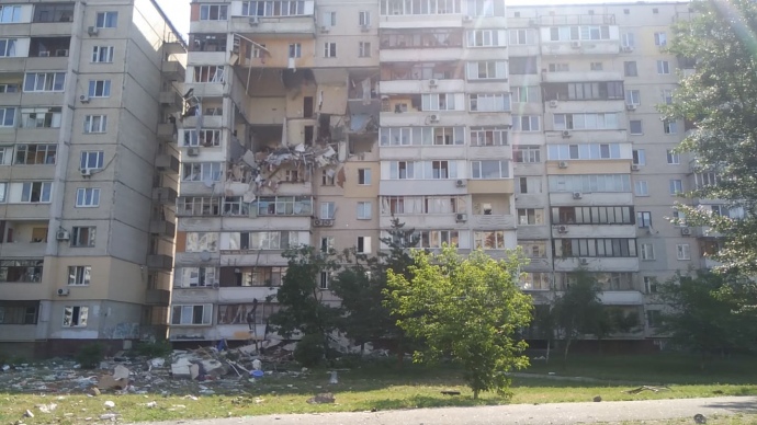 Взрывом задело этажи с четвертого по восьмой. Разрушения - с обеих сторон многоэтажки. Фасадная стена дома оказалась под угрозой обвала.