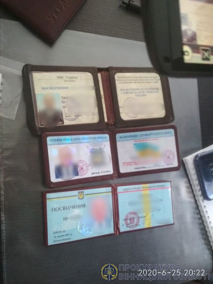 Прокуратура Винницкой области совместно с СБУ и ГБР задержали трех человек, которые безосновательно требовали у местного предпринимателя 1,1 миллиона гривен несуществующего долга, прикрываясь связями в Офисе президента.