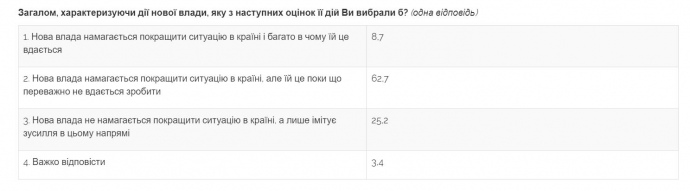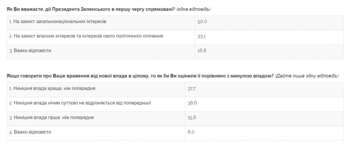 Дословно: "В целом 37% опрошенных оценили деятельность В.Зеленского в течение первого года пребывания у власти "хорошо" или "очень хорошо". Относительное большинство, 34% опрошенных оценили деятельность В.Зеленского на "3" ("не плохо и не хорошо"), а 28% - "довольно плохо" или "очень плохо".