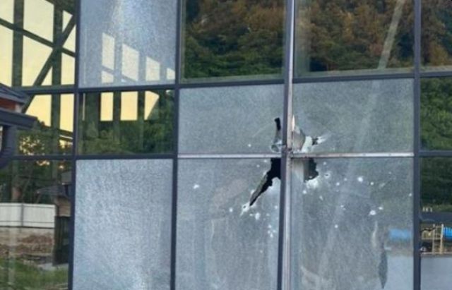 Детали: По информации СМИ от местных жителей, событие произошло около 03:00 часов ночи. Предварительно повреждено 7-9 стеклянных панелей самого здания и беседки, которые стоят у здания, на одной из беседок на крыше застрял снаряд из РПГ, не разорвался.