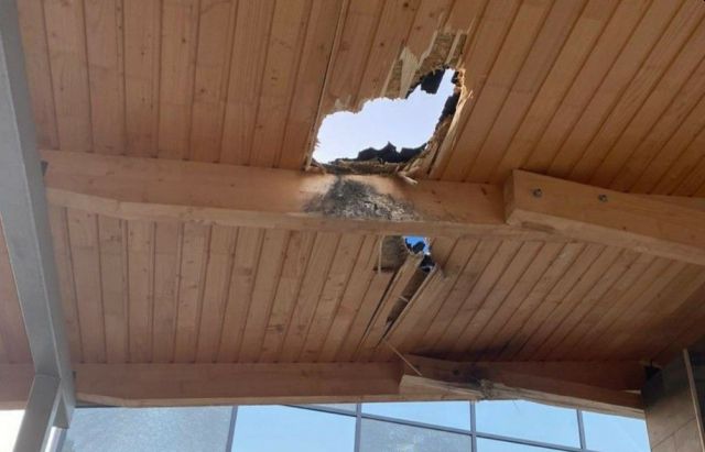 В результате обстрела повреждения получили металлическая конструкция помещения бассейна и беседка, на которой повреждена крыша. Пострадавших среди сотрудников нет