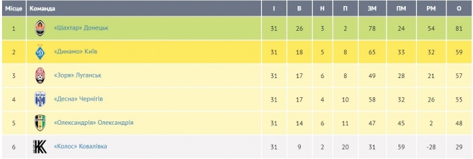 В заключительном 32-м туре "Динамо" для сохранения второго места хватит и ничьей в игре с "Колос". В другом матче 31 тура "Десна" уступила "Александрии" со счетом 1:3 и потеряла шансы на борьбу за второе место.