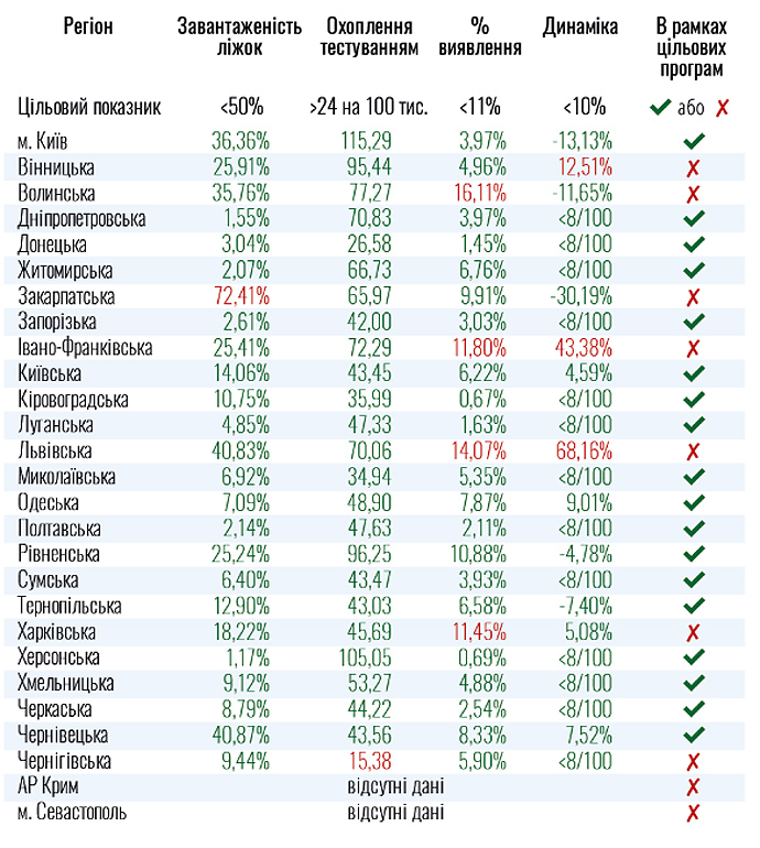 Кроме того, на Закарпатье превышает норму загруженность коек для пациентов с COVID-19, а на Черниговщине – низкий процент охвата тестированием.