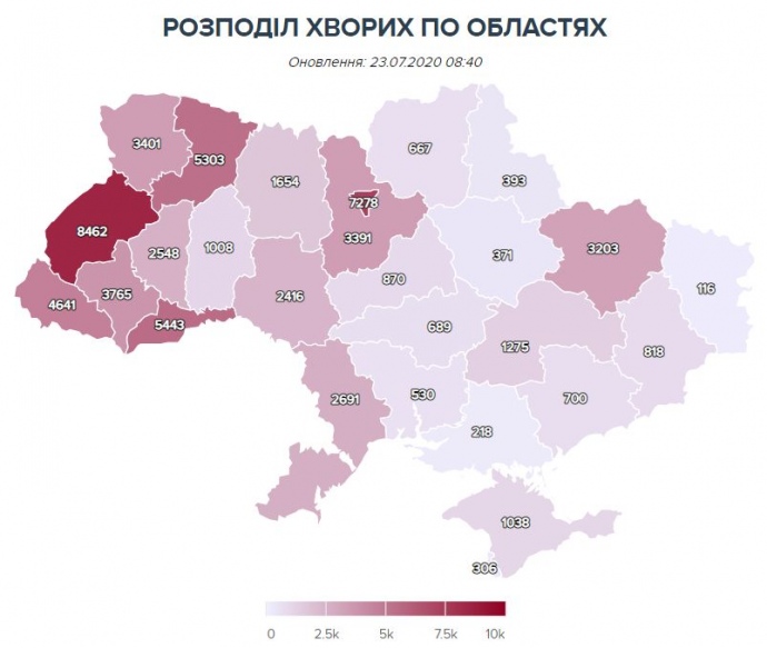 За сутки 22 июля в Украине диагноз COVID-19 подтвердили 856 людям, выздоровели 828 больных, умерли 17 человек.