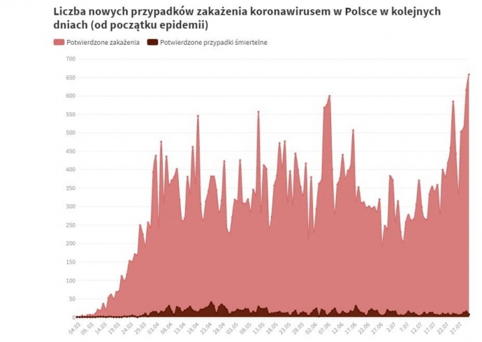 В пятницу Министерство здравоохранения Польши сообщило о 657 новых подтвержденных случаев коронавируса - это самое большое количество за сутки с начала пандемии.