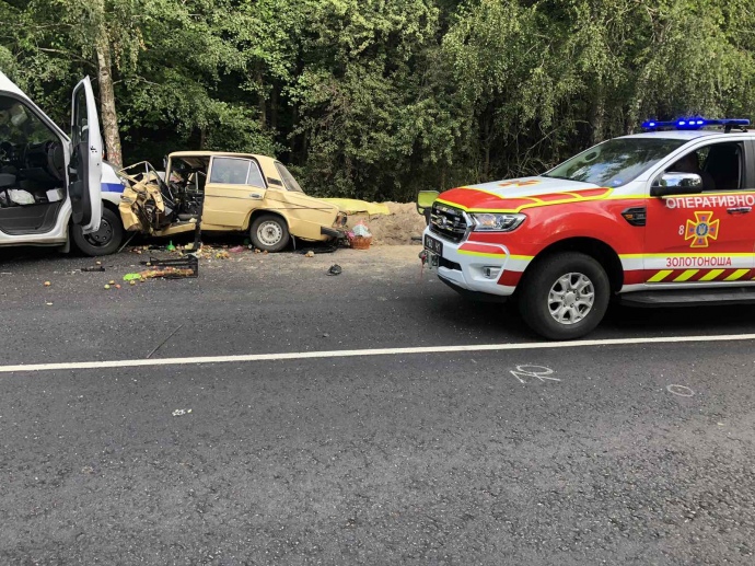 Детали: Спасатели дежурного караула золотоношской государственной пожарно-спасательной части, которые прибыли к месту происшествия, провели работы по деблокированию травмированного пассажира и погибшего водителя одного из автомобилей ВАЗ.