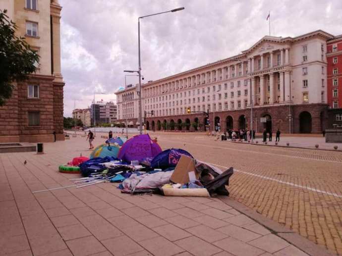В Софии около 05:00 все палатки и личные вещи манифестантов были выброшены на соседний тротуар. У митингующих было несколько минут, чтобы забрать свои личные вещи, после палатки и все остальное погрузили на грузовик и вывезли.
