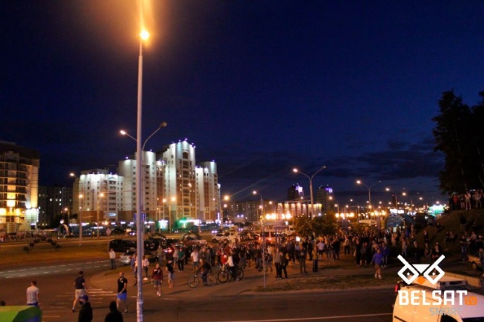 Около полутысячи протестующих собрались в районе Серебрянка. Там же ОМОН заблокировал дорогу, а люди запустили салют в сторону силовиков. Очевидцы сообщают о постоянных звуках взрывов в этом районе. На место также вызывают много "скорых".