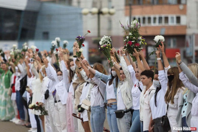 "Цепи солидарности", на которые вышли в основном женщины, проходят в Минске, Витебске, Гомеле, Гродно и других городах Беларуси.