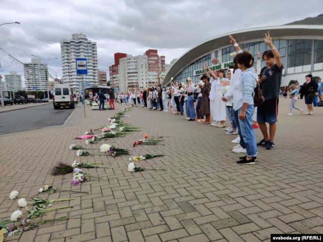 Жители Беларуси вышли на "цепи солидарности" против насилия силовиков