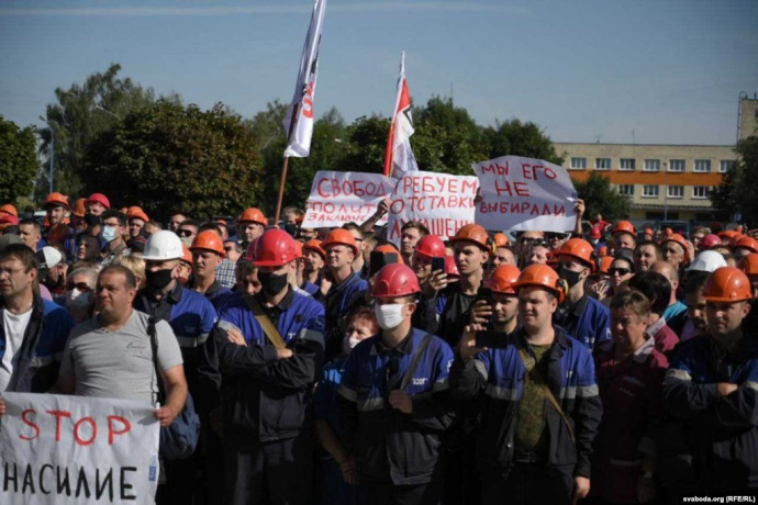 Детали: Сообщается, что 13 августа около тысячи рабочих крупного химического предприятия прошли маршем от завода до центра Гродно.