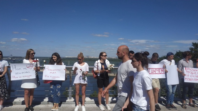 Детали: Около сотни участников акции образовали на мосту цепь солидарности.