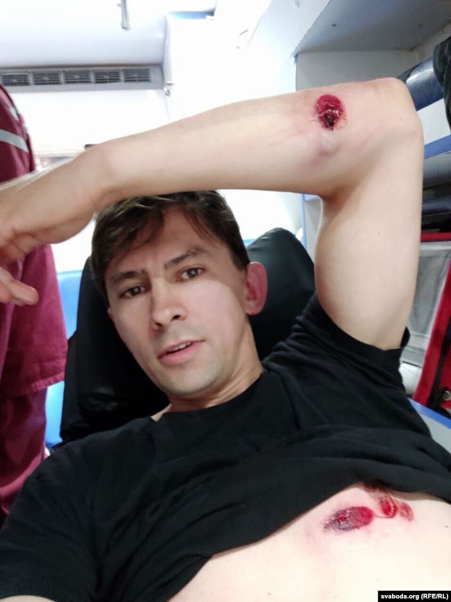 Прямая речь: "Одна резиновая пуля попала в предплечье – проникающее ранение. Были еще два касательных ранения – в грудь и в лопатку. Видимо, повезло, потому что, если бы корпус был под другим углом, могло бы быть намного хуже".