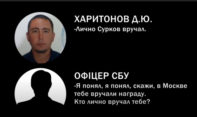 Харитонов отметил, что у него российский военный билет и он служил в 1999-2001 году. Награду за сбитые самолеты ему вручал в Москве помощник президента России Владислав Сурков. Российских государственных наград у него две - за взятие Пальмиры и за "вертушки в Луганске".