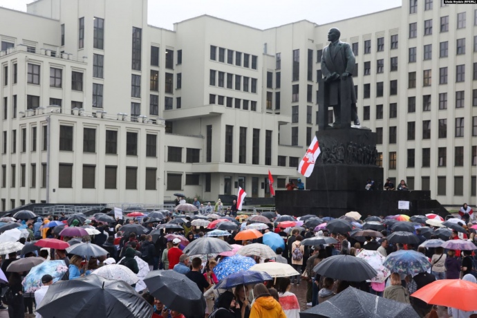 Несколько тысяч человек собрались на площади Независимости в Минске к 19:00 в знак протеста против фальсификации результатов президентских выборов и насилия со стороны силовиков.