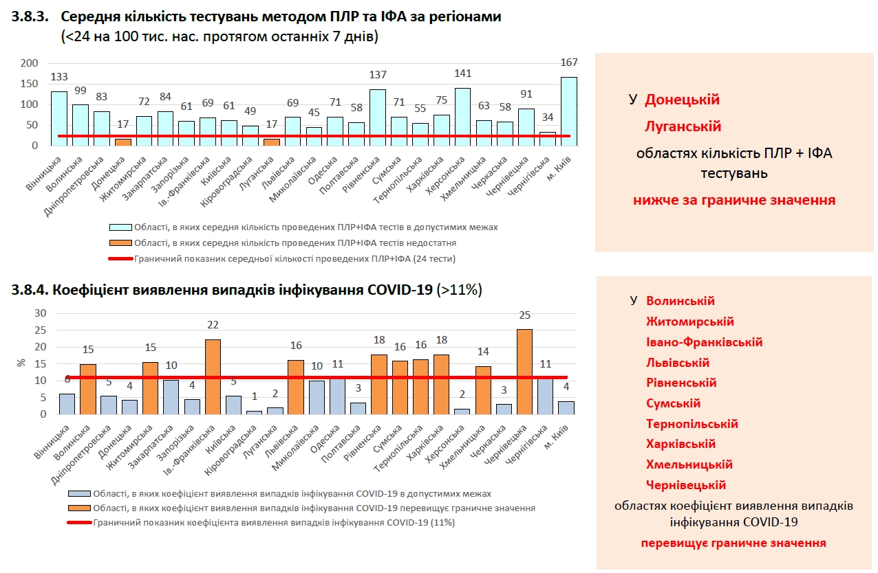 Коэффициент выявления больных COVID-19 слишком высок в Волынской, Житомирской, Ивано-Франковской, Львовской, Ровенской, Сумской, Тернопольской, Харьковской, Хмельницкой и Черновицкой областях.