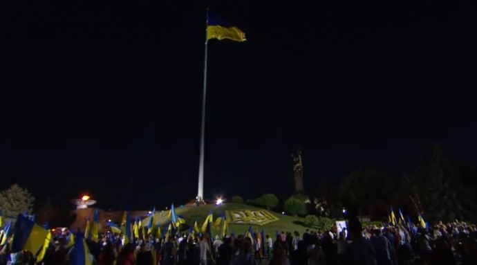 Детали: Размер полотнища флага - 16 на 24 метра. По словам Кличко, флаг можно будет увидеть и ночью "практически с любой точки города".