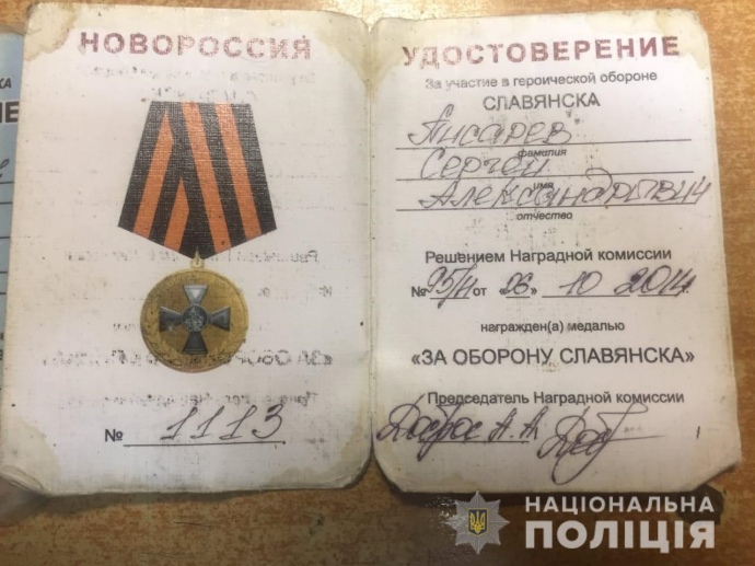 Во время поверхностного осмотра у него обнаружили документы, выданные оккупационными властями так называемой "донецкой народной республики". В частности, у него был "военный билет ДНР" и "удостоверение народного ополченца Донбасса".