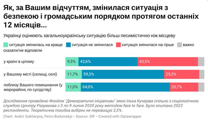 Детали: Украинцы оценивают ситуацию с преступностью на местном уровне более оптимистично, чем на общегосударственном.