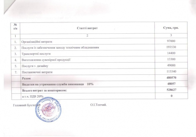 Таким образом, в целом торжественные мероприятия обошлись местному и государственному бюджету в 1 601 632 гривен.