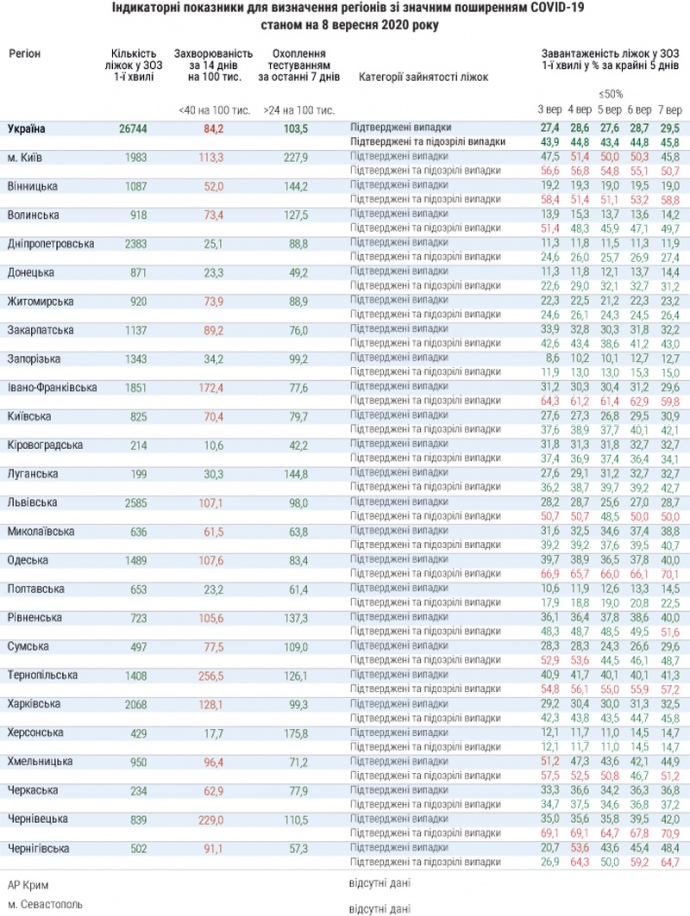 По состоянию на 8 сентября 17 областей Украины и столица не готовы к ослаблению карантина.