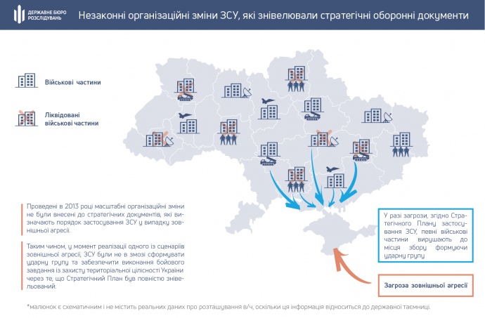 Дословно: "По результатам предварительного расследования ГБР установило истинные причины и условия, способствовавшие развалу ВСУ и аннексии Крымского полуострова. В частности, преступные действия по подрыву боеспособности украинской армии начались в 2012 году и продолжались вплоть до вторжения боевых подразделений РФ на территорию АР Крым в феврале 2014 года.