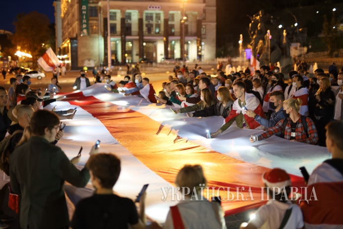 В субботу вечером на Майдане Независимости в Киеве прошла акция ко Дню белорусской символики – День белорусского флага.