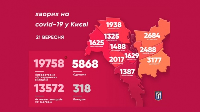 Подтвержденных случаев заболевания COVID-19 на сегодня в столице уже 19 758. Всего коронавирус преодолели 5868 жителей Киева. Болезнь унесла жизни 318 киевлян.