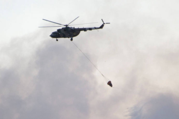 Во время стрельб загорелся полигон: к тушению привлекли самолеты, танки и вертолет