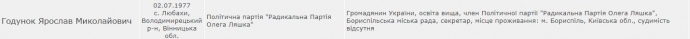 Детали: Годунок баллотируется от партии радикала Олега Ляшко.