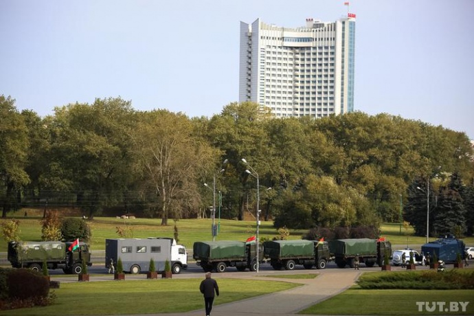 Детали: В центре Минска много спецтехники и правоохранителей. В районе станции метро "Пушкинская", "Московская", рядом с площадью Независимости и в других местах были замечены автозаки и микроавтобусы без номеров.