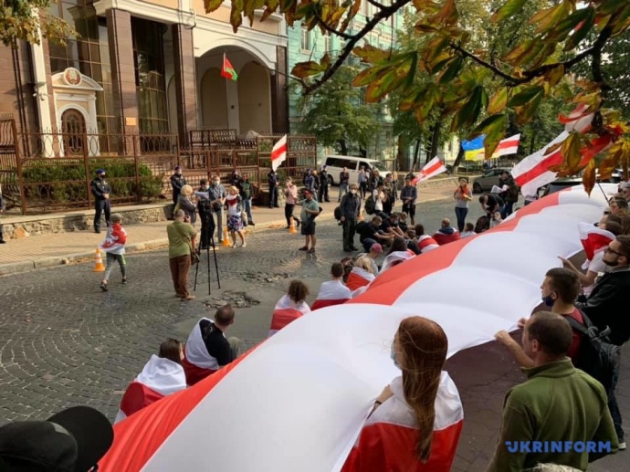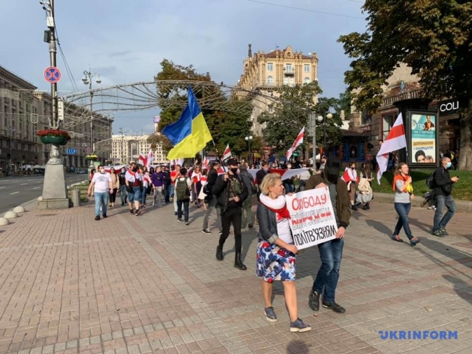 Вместе с этим участники мероприятия выражают свою поддержку участникам протестов в Беларуси и выступают против задержаний белорусских митингующих силовиками.