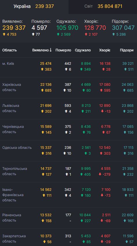 Новые "рекорды" COVID в Украине: 4753 человек заболели, 2569 человек выздоровели