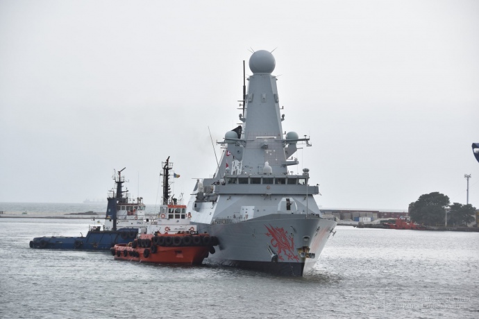 В Одесский морской порт прибыл эсминец Королевских Военно-Морских Сил Великобритании "Dragon", который примет участие в тренировках на борту и тренировках в море типа "PASSEX".