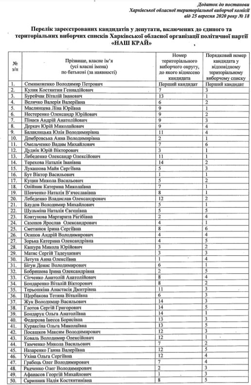 Источник: журналисты общественного движения "ЧЕСНО", постановление Харьковской областной территориальной избирательной комиссии о регистрации кандидатов в депутаты облсовета