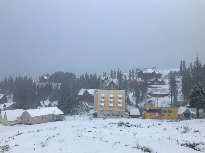 В Карпатах идет снег, на горнолыжном курорте Драгобрат намело около 5-7см, на горе Поп Иван температура воздуха уже минусовая.