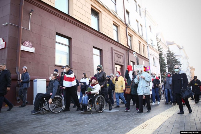 Это уже второй марш людей с инвалидностью в знак протеста против фальсифицированных президентских выборов (первый прошел 15 октября).