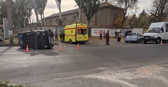 Как пишут Донецкие новости, авария произошла 23 октября в районе Городка в Луганске, столкнулись легковой автомобиль, маршрутное такси 155 и автомобиль "УАЗ" с местними "полицейскими", который ехал с включенными маячками и сиреной. "УАЗ" в результате столкновения перевернулся.