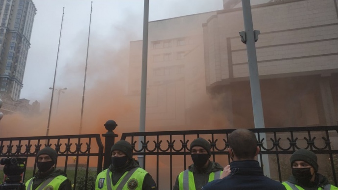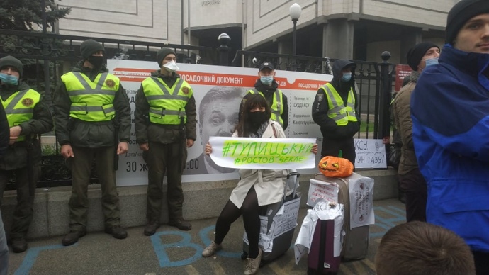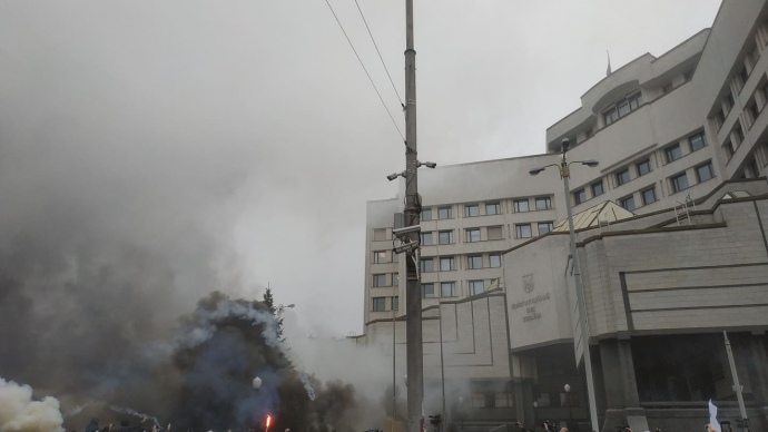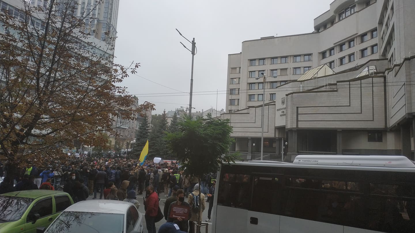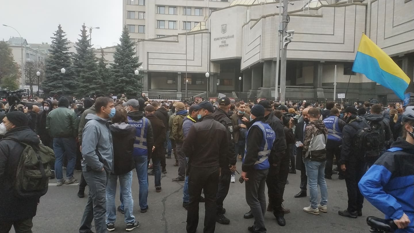 Под Конституционным судом проходит акция протеста против решения судей о неконституционности ключевых антикоррупционных норм.