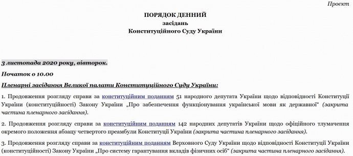 Детали: На ближайших заседаниях Конституционный суд Украины планирует в закрытом режиме рассмотреть конституционность законов "Об обеспечении функционирования украинского языка как государственного" и "О системе гарантирования вкладов физических лиц".