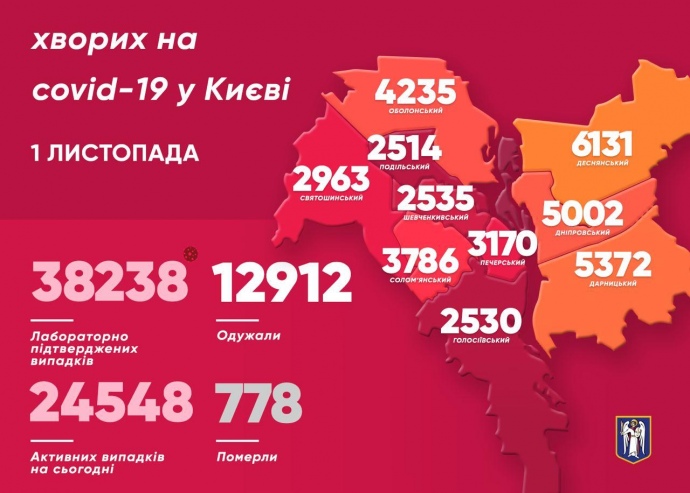 Детали: Подтвержденных случаев заболевания COVID-19 на сегодня в столице уже 38 238. С начала эпидемии коронавирус унес жизни 778 киевлян.