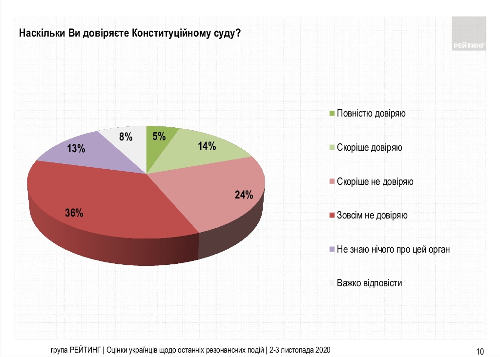 КС потерял доверие 60% украинцев, столько же поддержки у идеи его роспуска