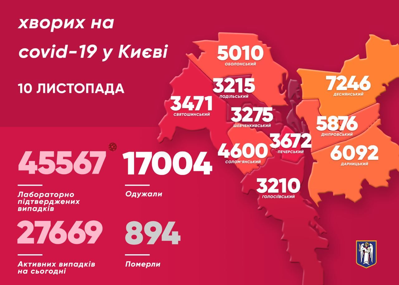 За все время пандемии в Киеве подтвердили 45 667 случаев заболевания COVID-19. Коронавирус унес жизни 894 киевлян, а преодолели коронавирусную болезнь 17 004 жителя Киева.