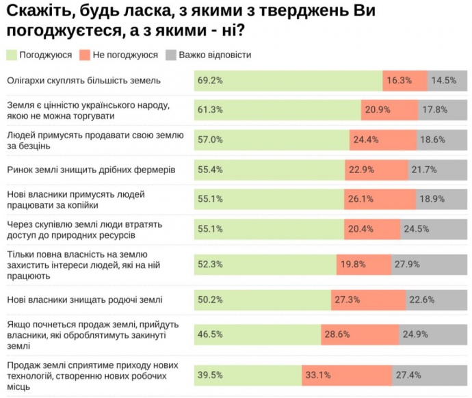 Почти 70% украинцев соглашаются с тем, что олигархи скупят большинство сельскохозяйственных земель после открытия рынка.